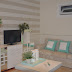Hoje deixo-vos com a sala da nossa querida Mariana. Aqui optámos por utizar um papel de riscas beijes e brancas, aplicadas na horizontal.