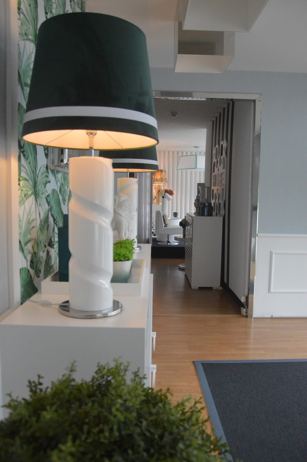 Como o prometido é devido...aqui fica o ambiente do hall de entrada do nosso showroom. Ora venham espreitar.  Como podem ver na imagem, temos três candeeiros de tecto em inox e madeira lacada, que fizemos à medida do espaço.